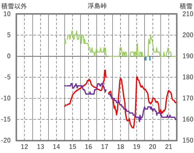 | 日 | 時 | 気温 | 降水 | 風向/風速 | 日照 | 積雪 | 降雪 |