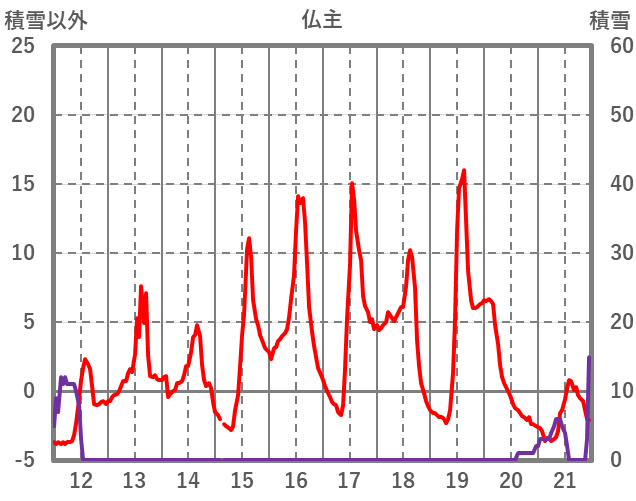 | 日 | 時 | 気温 | 降水 | 風向/風速 | 日照 | 積雪 | 降雪 |