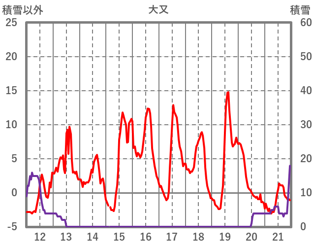 | 日 | 時 | 気温 | 降水 | 風向/風速 | 日照 | 積雪 | 降雪 |