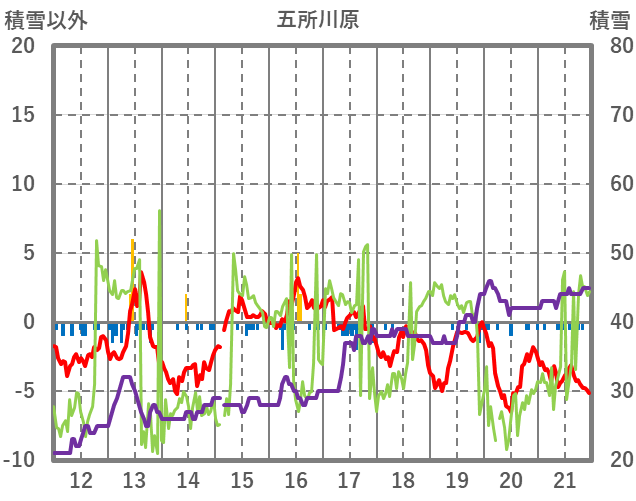 | 日 | 時 | 気温 | 降水 | 風向/風速 | 日照 | 積雪 | 降雪 |