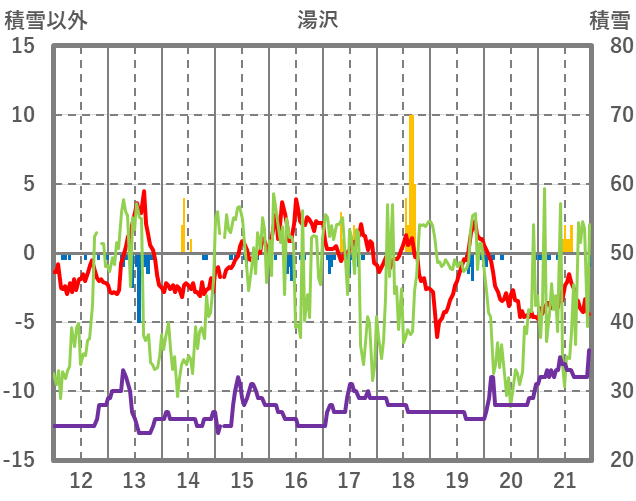 | 日 | 時 | 気温 | 降水 | 風向/風速 | 日照 | 積雪 | 降雪 |