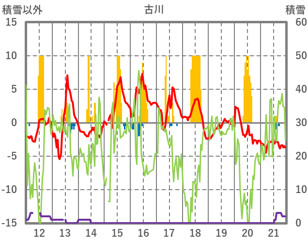 | 日 | 時 | 気温 | 降水 | 風向/風速 | 日照 | 積雪 | 降雪 |