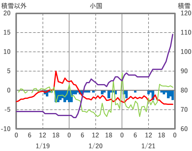 | 日 | 時 | 気温 | 降水 | 風向/風速 | 日照 | 積雪 | 降雪 |