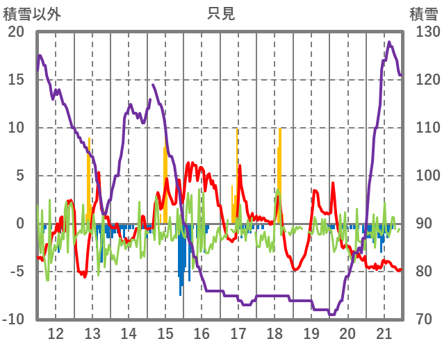 | 日 | 時 | 気温 | 降水 | 風向/風速 | 日照 | 積雪 | 降雪 |