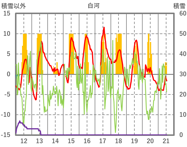| 日 | 時 | 気温 | 降水 | 風向/風速 | 日照 | 積雪 | 降雪 |