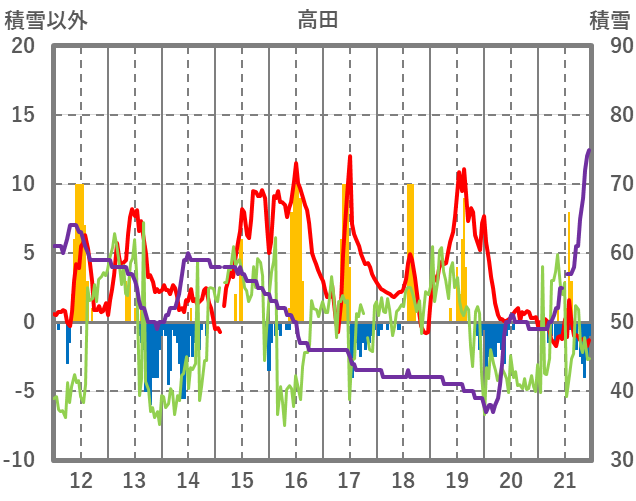 | 日 | 時 | 気温 | 降水 | 風向/風速 | 日照 | 積雪 | 降雪 |