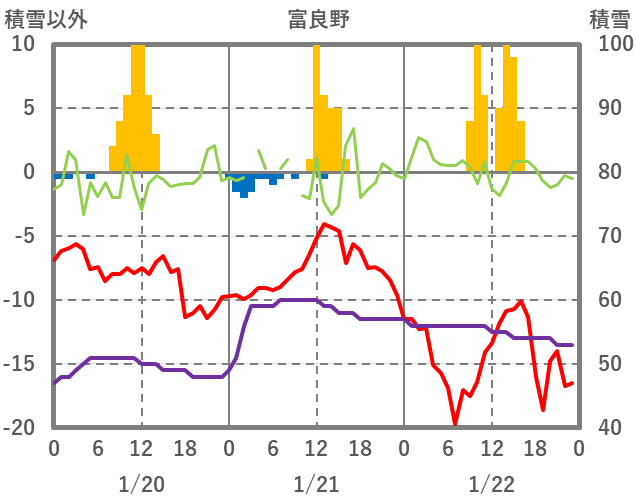 | 日 | 時 | 気温 | 降水 | 風向/風速 | 日照 | 積雪 | 降雪 |