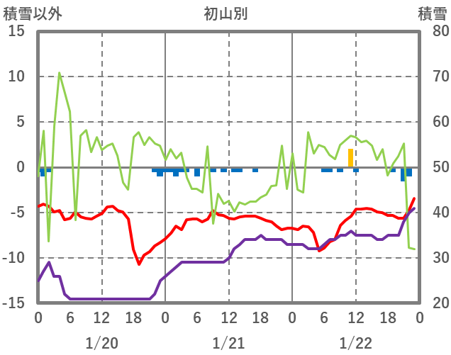 | 日 | 時 | 気温 | 降水 | 風向/風速 | 日照 | 積雪 | 降雪 |