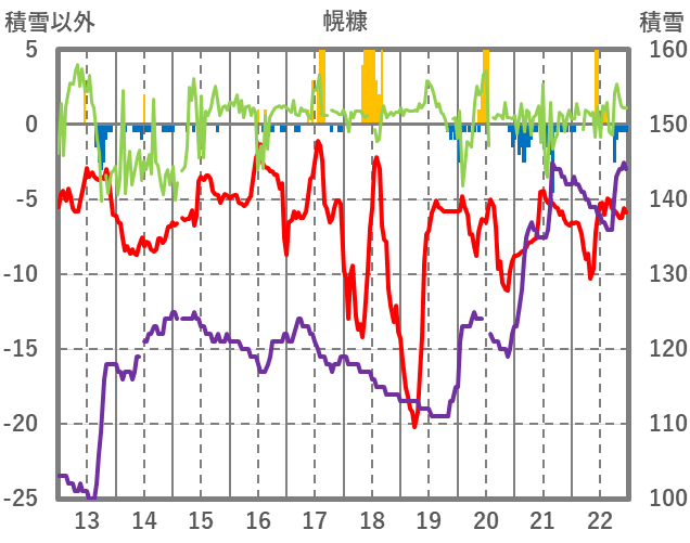 | 日 | 時 | 気温 | 降水 | 風向/風速 | 日照 | 積雪 | 降雪 |