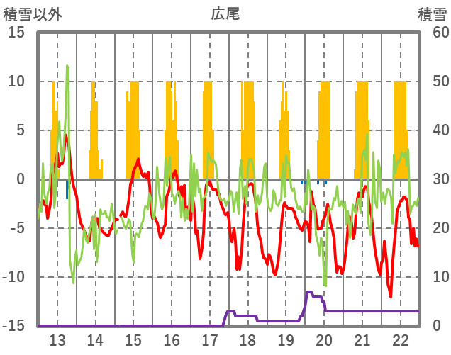 | 日 | 時 | 気温 | 降水 | 風向/風速 | 日照 | 積雪 | 降雪 |