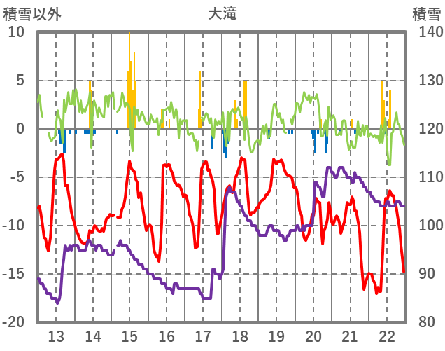 | 日 | 時 | 気温 | 降水 | 風向/風速 | 日照 | 積雪 | 降雪 |
