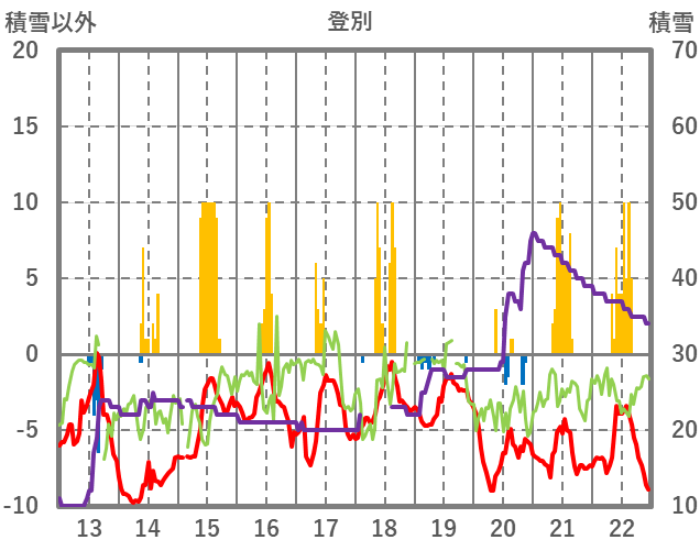 | 日 | 時 | 気温 | 降水 | 風向/風速 | 日照 | 積雪 | 降雪 |