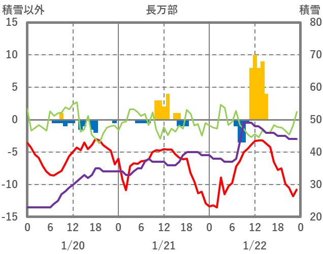 | 日 | 時 | 気温 | 降水 | 風向/風速 | 日照 | 積雪 | 降雪 |