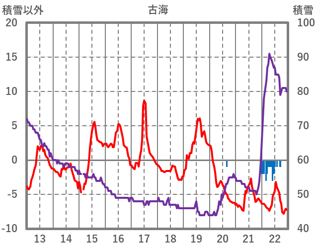 | 日 | 時 | 気温 | 降水 | 風向/風速 | 日照 | 積雪 | 降雪 |