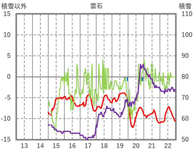 | 日 | 時 | 気温 | 降水 | 風向/風速 | 日照 | 積雪 | 降雪 |