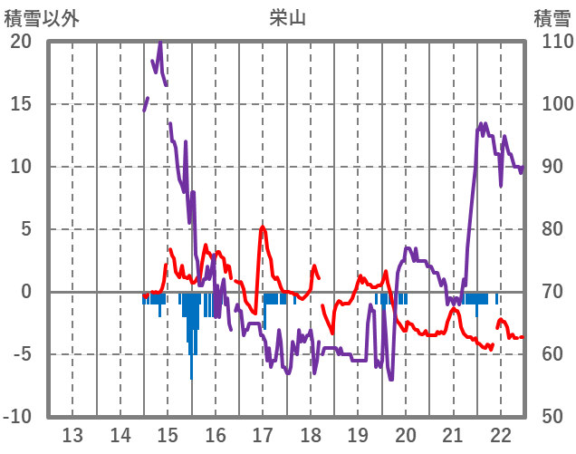 | 日 | 時 | 気温 | 降水 | 風向/風速 | 日照 | 積雪 | 降雪 |