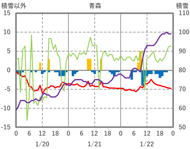 | 日 | 時 | 気温 | 降水 | 風向/風速 | 日照 | 積雪 | 降雪 |