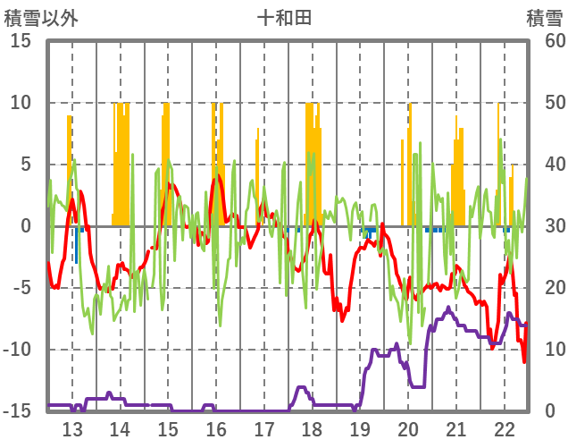 | 日 | 時 | 気温 | 降水 | 風向/風速 | 日照 | 積雪 | 降雪 |