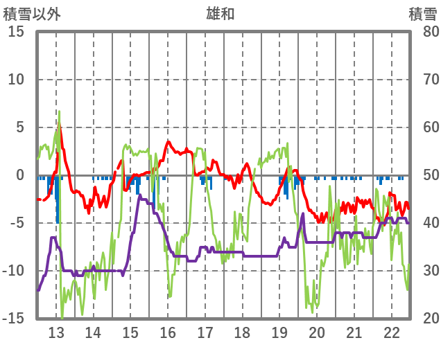 | 日 | 時 | 気温 | 降水 | 風向/風速 | 日照 | 積雪 | 降雪 |