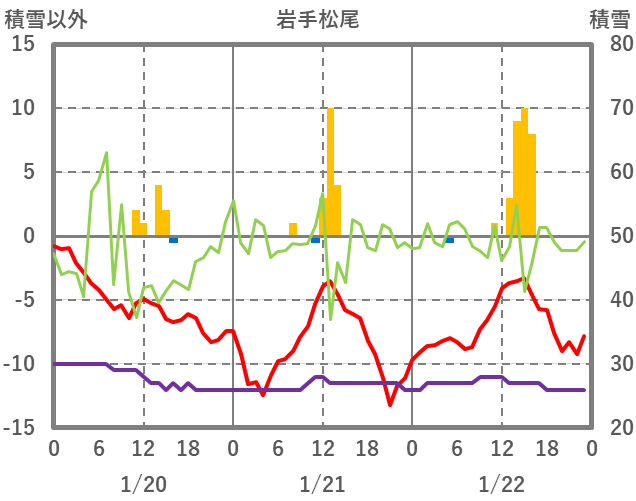 | 日 | 時 | 気温 | 降水 | 風向/風速 | 日照 | 積雪 | 降雪 |