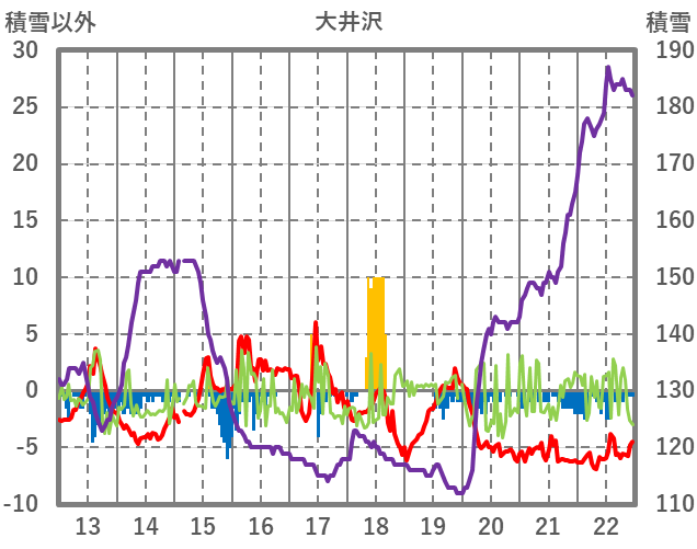 | 日 | 時 | 気温 | 降水 | 風向/風速 | 日照 | 積雪 | 降雪 |