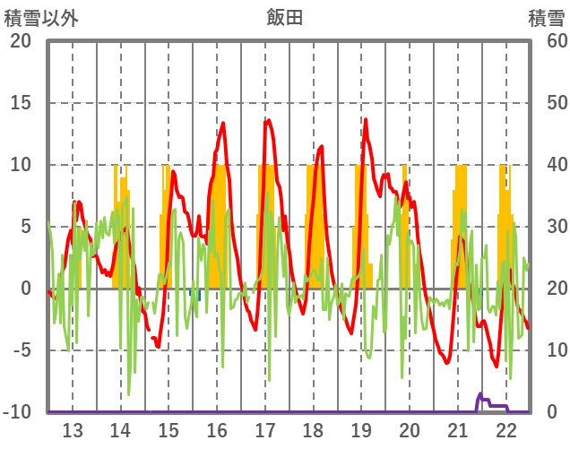 | 日 | 時 | 気温 | 降水 | 風向/風速 | 日照 | 積雪 | 降雪 |