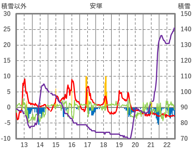 | 日 | 時 | 気温 | 降水 | 風向/風速 | 日照 | 積雪 | 降雪 |