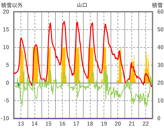 | 日 | 時 | 気温 | 降水 | 風向/風速 | 日照 | 積雪 | 降雪 |