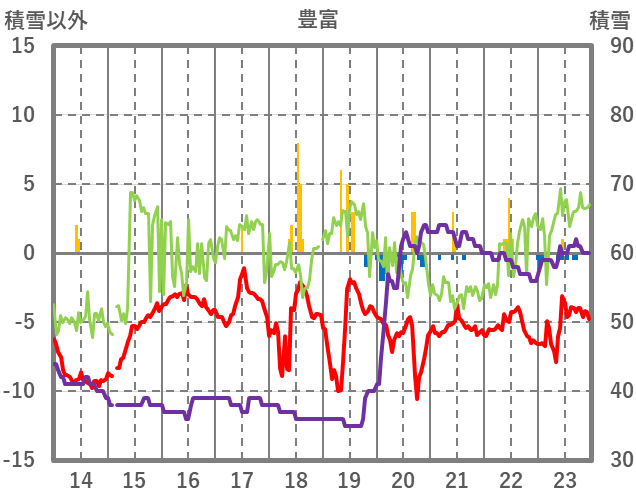 | 日 | 時 | 気温 | 降水 | 風向/風速 | 日照 | 積雪 | 降雪 |