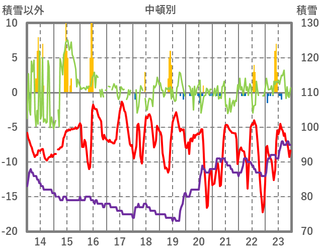 | 日 | 時 | 気温 | 降水 | 風向/風速 | 日照 | 積雪 | 降雪 |