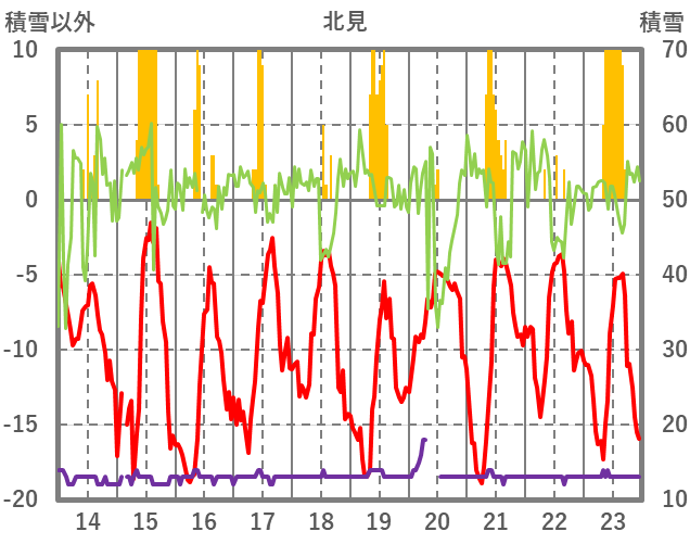 | 日 | 時 | 気温 | 降水 | 風向/風速 | 日照 | 積雪 | 降雪 |