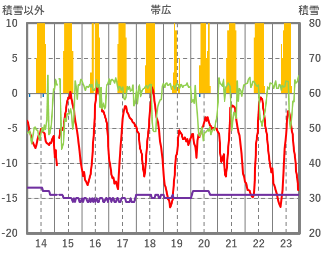 | 日 | 時 | 気温 | 降水 | 風向/風速 | 日照 | 積雪 | 降雪 |