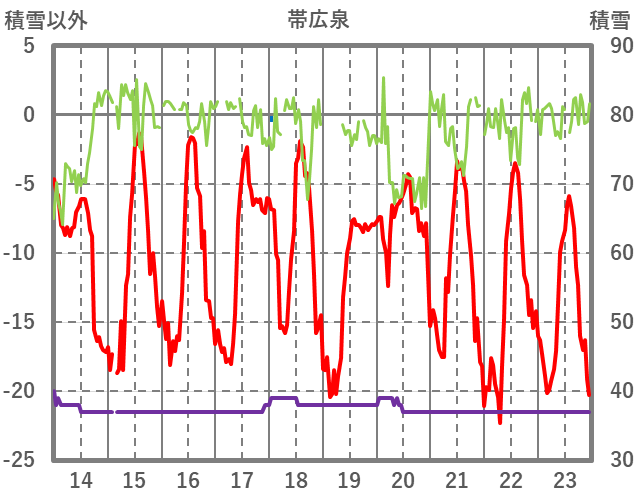 | 日 | 時 | 気温 | 降水 | 風向/風速 | 日照 | 積雪 | 降雪 |