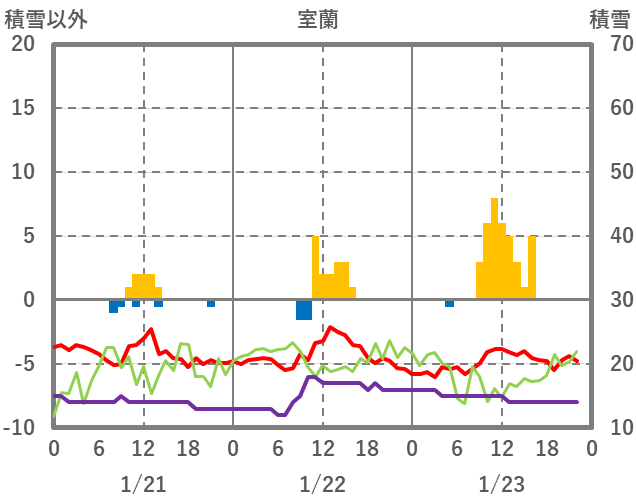 | 日 | 時 | 気温 | 降水 | 風向/風速 | 日照 | 積雪 | 降雪 |