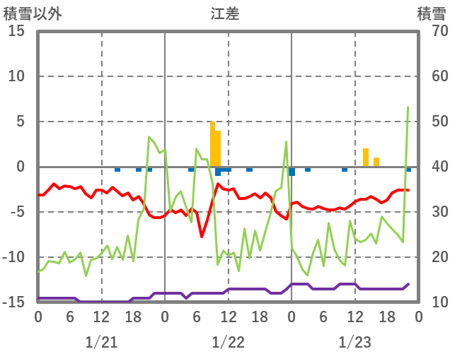 | 日 | 時 | 気温 | 降水 | 風向/風速 | 日照 | 積雪 | 降雪 |