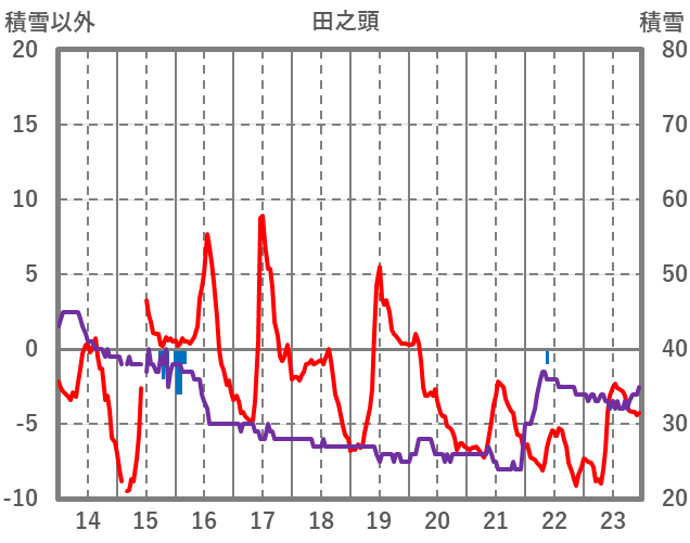 | 日 | 時 | 気温 | 降水 | 風向/風速 | 日照 | 積雪 | 降雪 |
