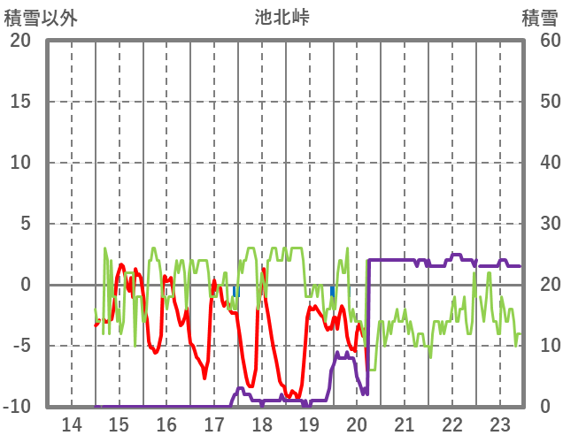 | 日 | 時 | 気温 | 降水 | 風向/風速 | 日照 | 積雪 | 降雪 |