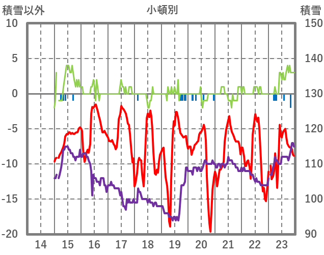 | 日 | 時 | 気温 | 降水 | 風向/風速 | 日照 | 積雪 | 降雪 |