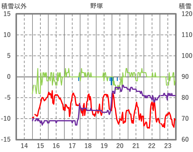 | 日 | 時 | 気温 | 降水 | 風向/風速 | 日照 | 積雪 | 降雪 |