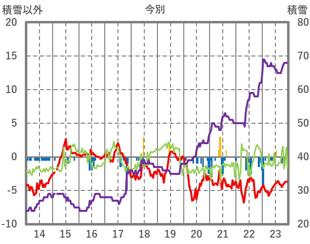 | 日 | 時 | 気温 | 降水 | 風向/風速 | 日照 | 積雪 | 降雪 |