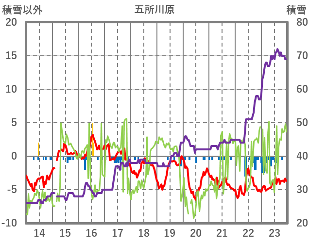 | 日 | 時 | 気温 | 降水 | 風向/風速 | 日照 | 積雪 | 降雪 |