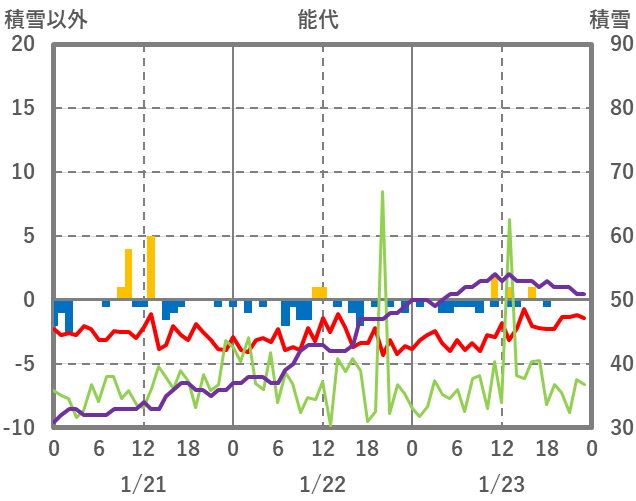 | 日 | 時 | 気温 | 降水 | 風向/風速 | 日照 | 積雪 | 降雪 |
