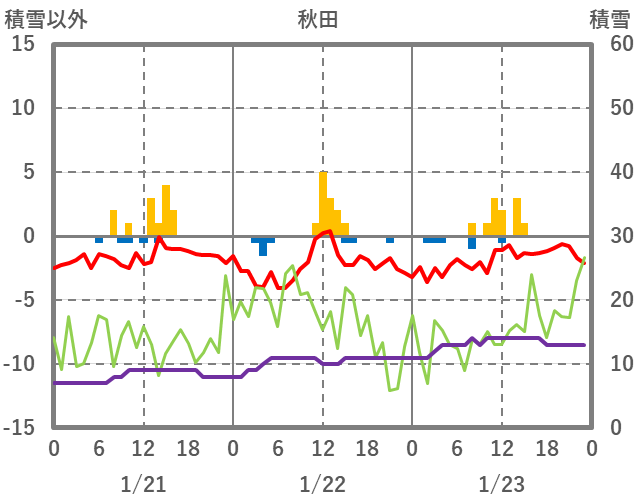 | 日 | 時 | 気温 | 降水 | 風向/風速 | 日照 | 積雪 | 降雪 |