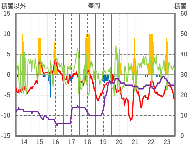 | 日 | 時 | 気温 | 降水 | 風向/風速 | 日照 | 積雪 | 降雪 |