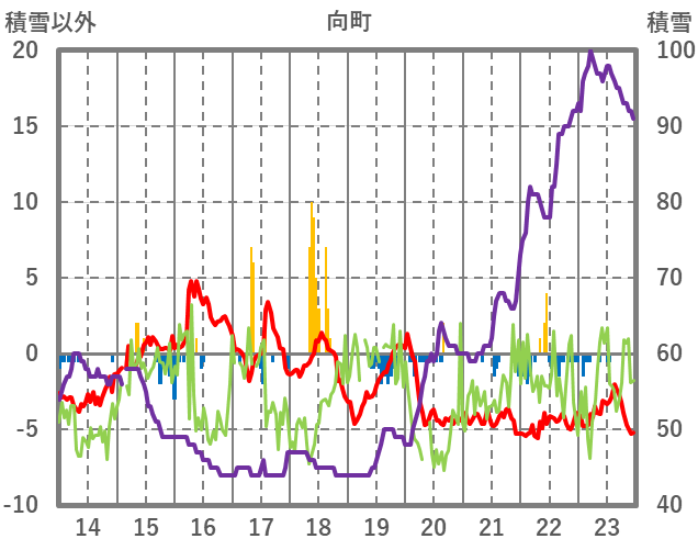 | 日 | 時 | 気温 | 降水 | 風向/風速 | 日照 | 積雪 | 降雪 |