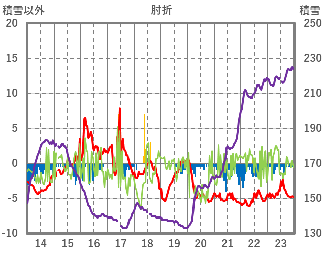 | 日 | 時 | 気温 | 降水 | 風向/風速 | 日照 | 積雪 | 降雪 |
