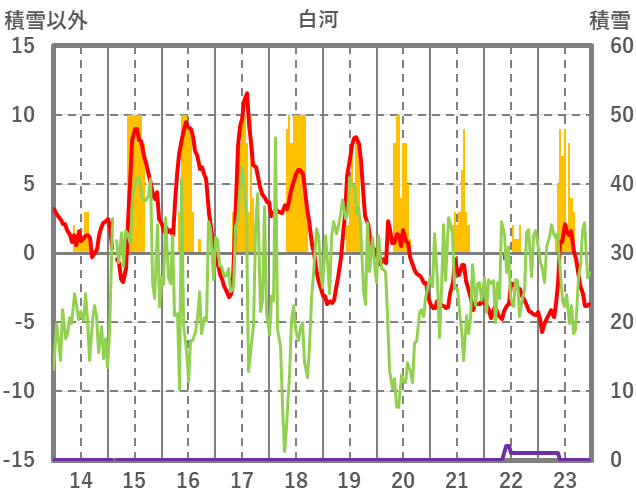 | 日 | 時 | 気温 | 降水 | 風向/風速 | 日照 | 積雪 | 降雪 |