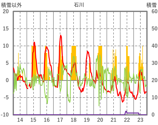 | 日 | 時 | 気温 | 降水 | 風向/風速 | 日照 | 積雪 | 降雪 |