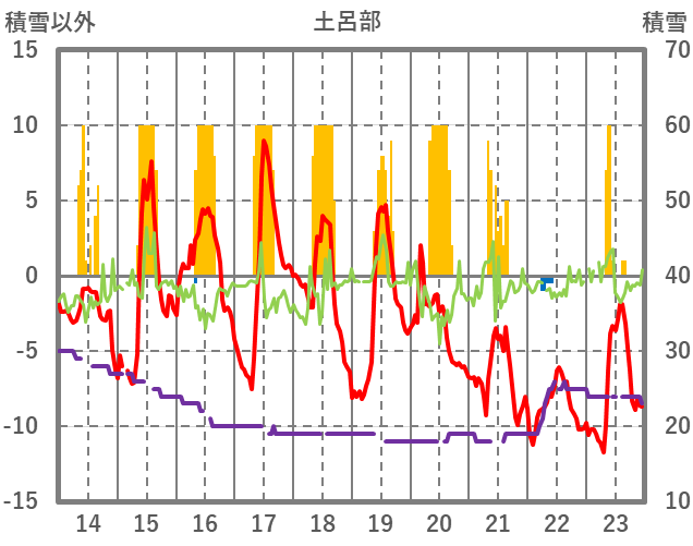 | 日 | 時 | 気温 | 降水 | 風向/風速 | 日照 | 積雪 | 降雪 |