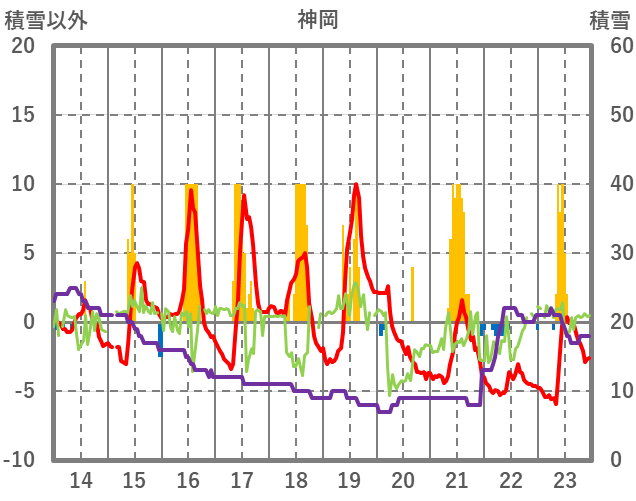 | 日 | 時 | 気温 | 降水 | 風向/風速 | 日照 | 積雪 | 降雪 |